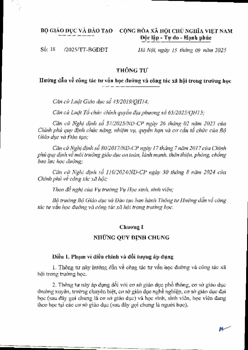 | Tiêu đề văn bản | Hướng dẫn về công tác tư vấn học đường và công tác xã hội tròng trường học | ||
