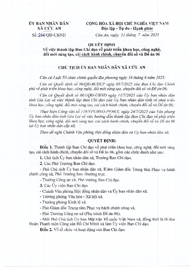 | Số hiệu | 266/QĐ-UBND | Cơ quan ban hành | --- |