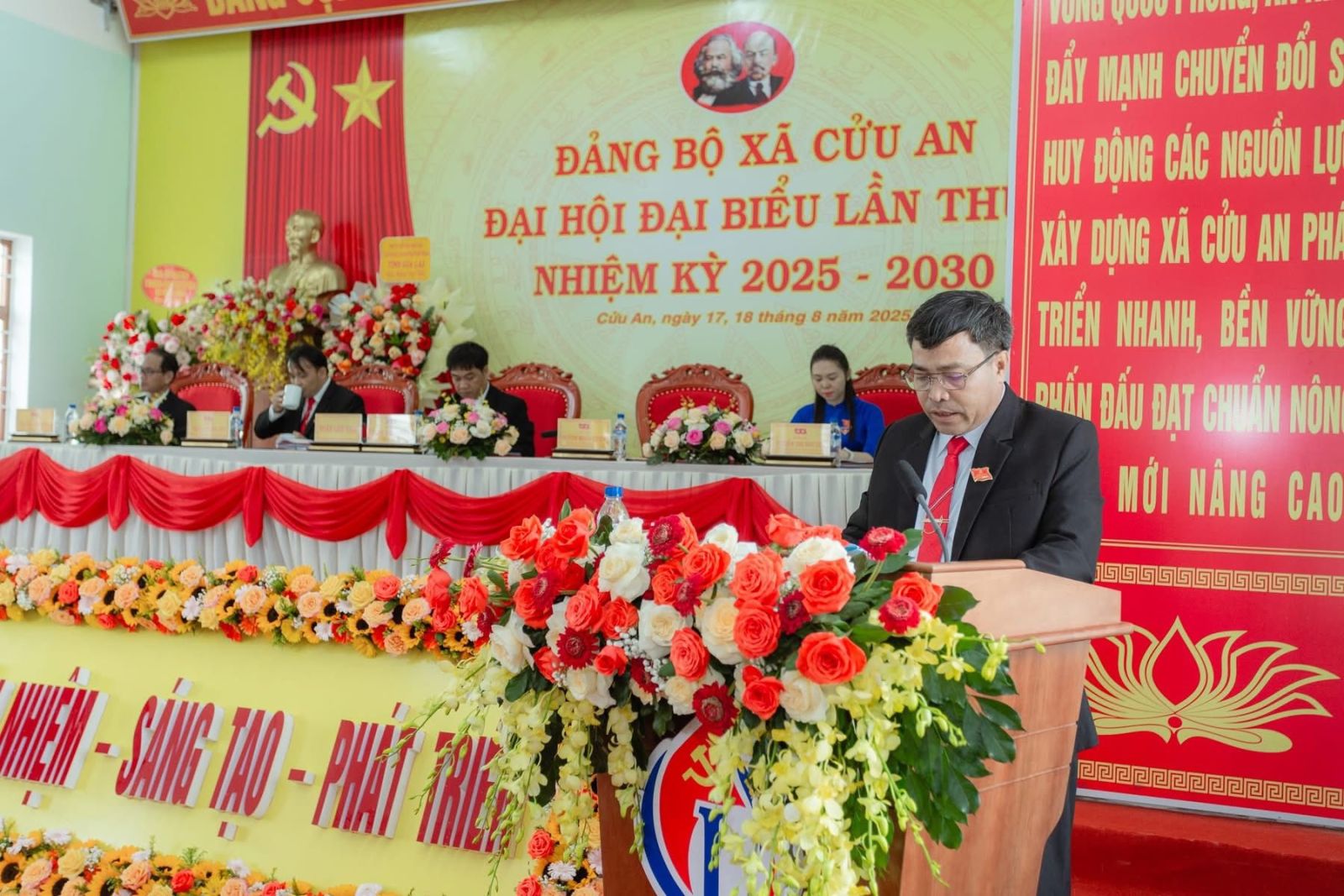 Đại hội đã công bố danh sách Ban Chấp hành, Ban thường vụ, Bí thư và các Phó bí thư Đảng bộ xã khóa I, nhiệm kỳ 2025 – 2030; thông qua Nghị quyết Đại hội với sự thống nhất, đồng thuận cao, thể hiện niềm tin, ý chí và quyết tâm chính trị của toàn thể cán bộ, đảng viên và Nhân dân xã Cửu An trong công cuộc xây dựng quê hương ngày càng giàu đẹp, văn minh.![]()