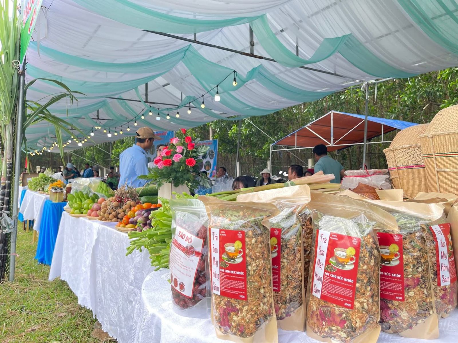 Các gian hàng giới thiệu sản phẩm đặc trưng của xã, góp phần quảng bá thương hiệu, khuyến khích phát triển kinh tế nông nghiệp, tiểu thủ công nghiệp và dịch vụ.